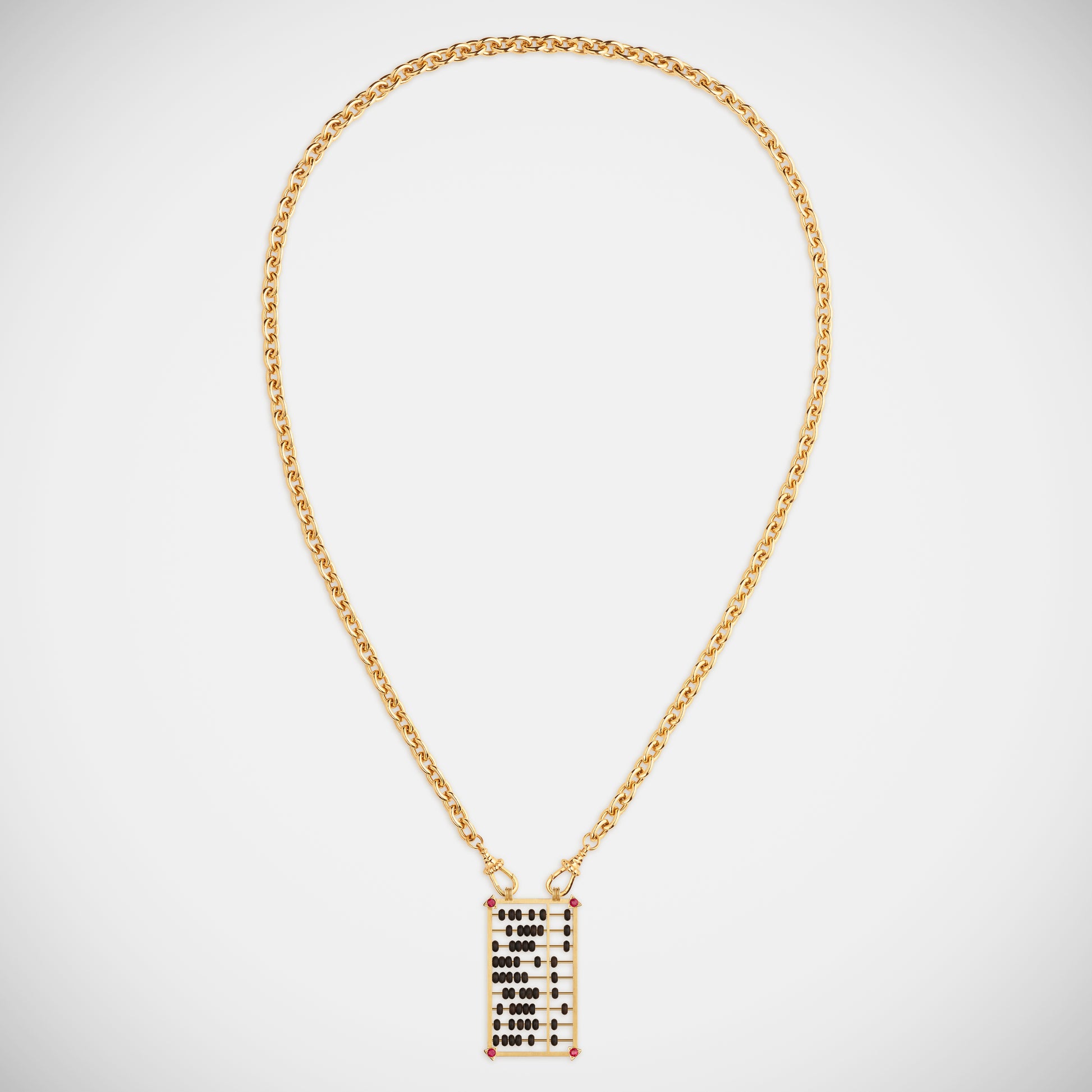 Marie’s grandfather had gold abacus handcuffs, which inspired her to create her very own, abacus pendant.